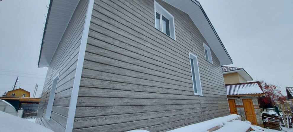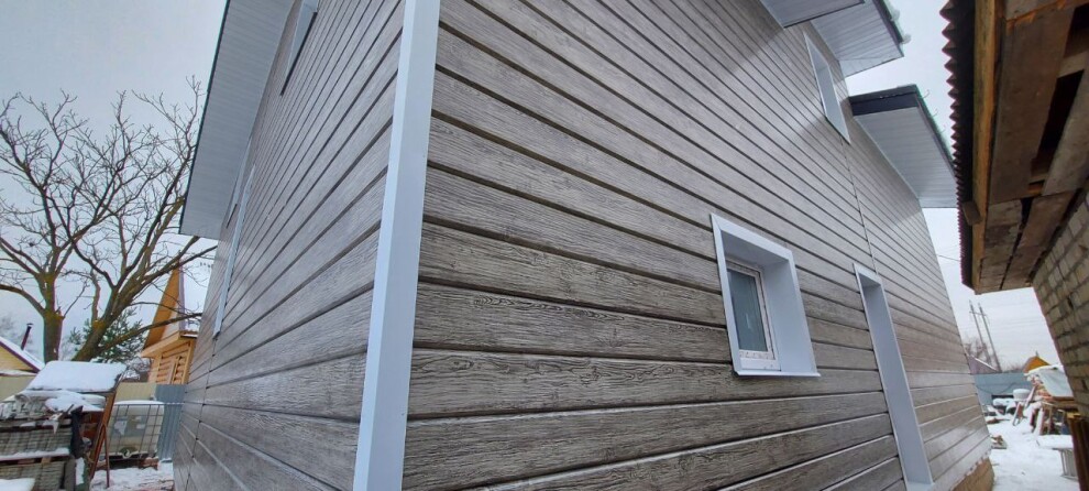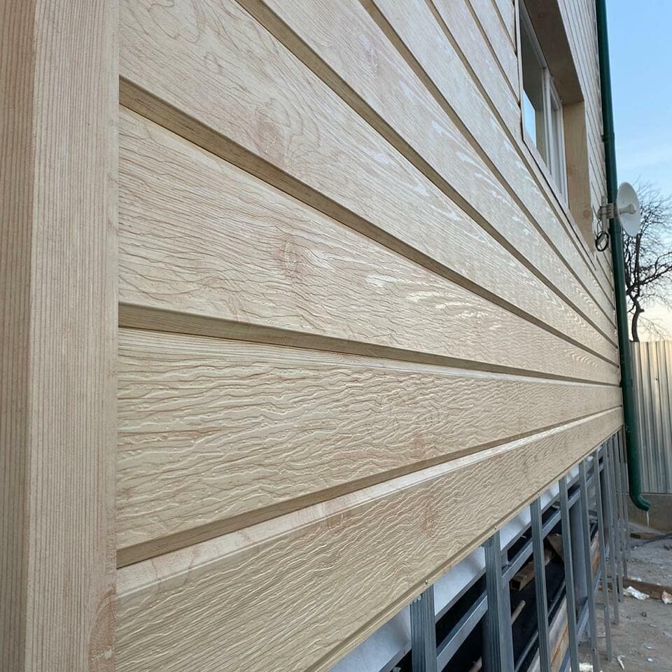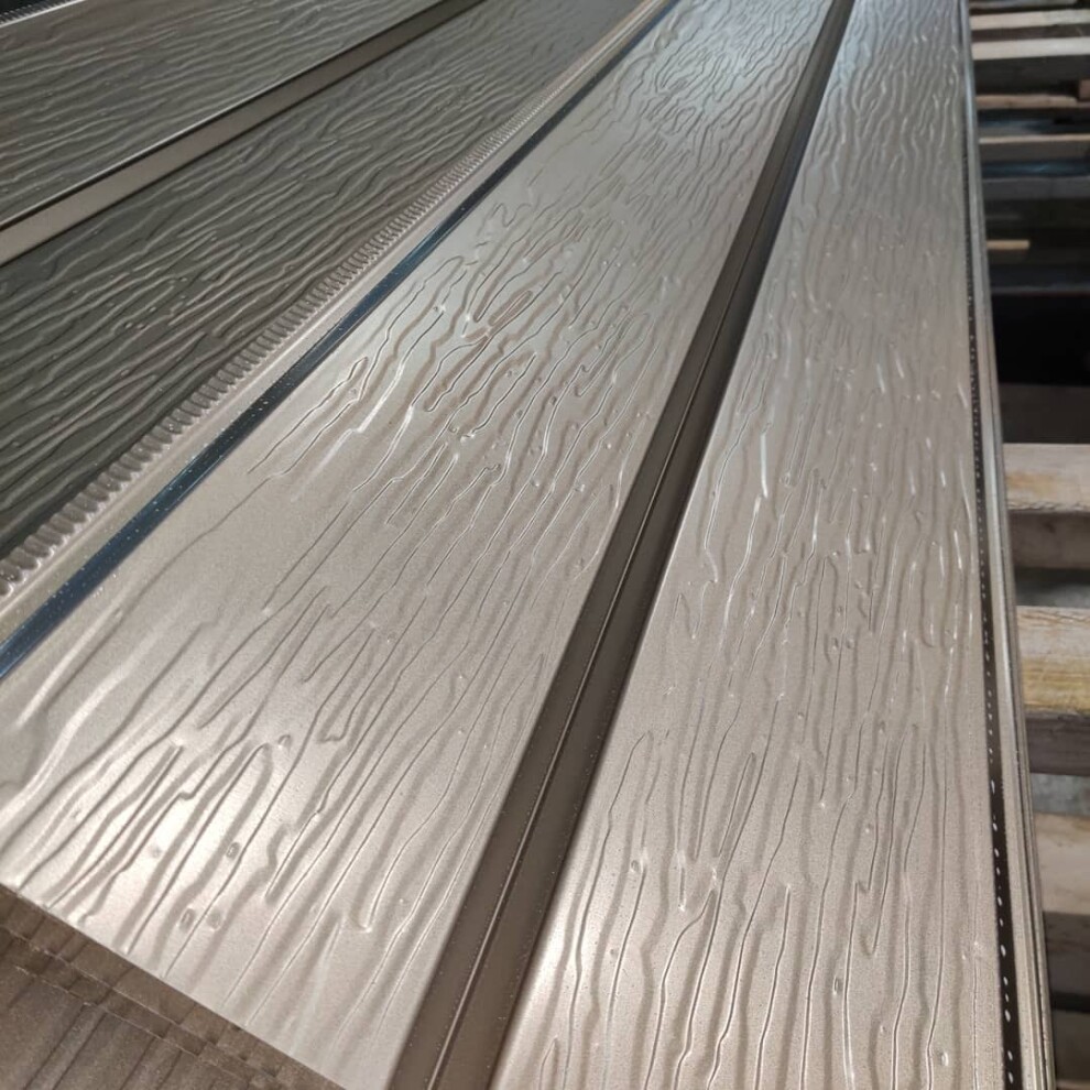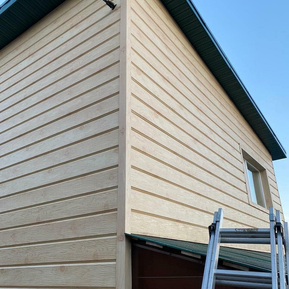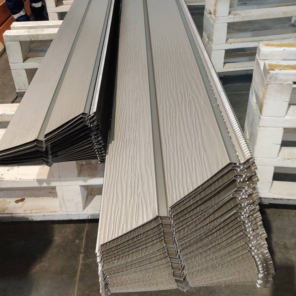 Металлический сайдинг «Евробрус» представляет собой точную имитацию формы клееного бруса, сочетая в себе все достоинства металла и представительный внешний вид бруса.