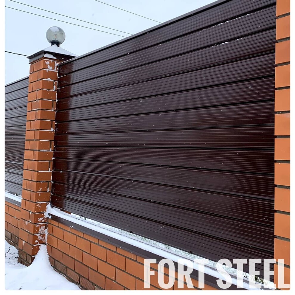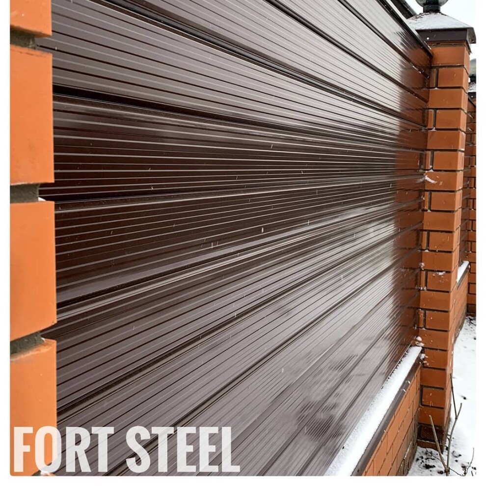 Металлический софит Fort Steel изготавливается из оцинкованной стали с полимерным покрытием Полиэстер. Такое покрытие надежно противостоит воздействию ультрафиолета и не выгорает на протяжении всего срока службы. Металлический софит не ведет и не коробит под воздействием перепада температур. Глубоко выраженный рельеф поверхности создает объем и делает общий вид максимально привлекательным.