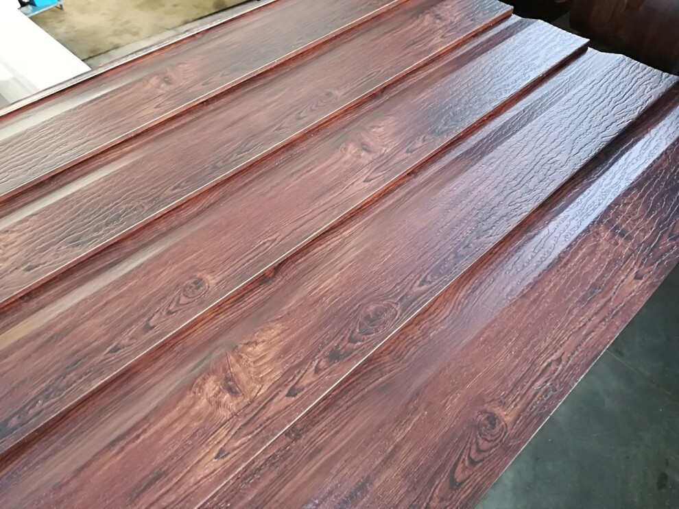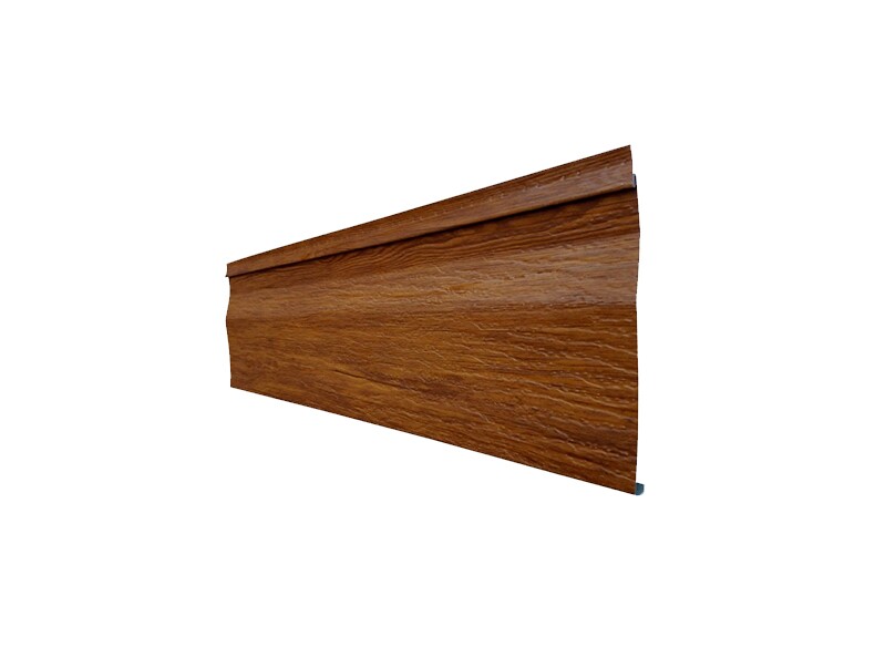Металлический сайдинг одноволновая корабельная доска – это классический профиль, который является одним из наиболее популярных на территории России. Визуально он представляет собой «сдвоенную двухполочную доску». Это отличный выбор для тех, кто предпочитает неординарность в строительстве и желает, чтобы их строение было оригинальным. Поверхность, покрытая таким сайдингом, напоминает уложенные внахлест доски; эффект достигается благодаря увеличенной глубине профиля одной из сторон панели. Текстура и цвет поверхностей выполняются с точной имитацией спила дерева